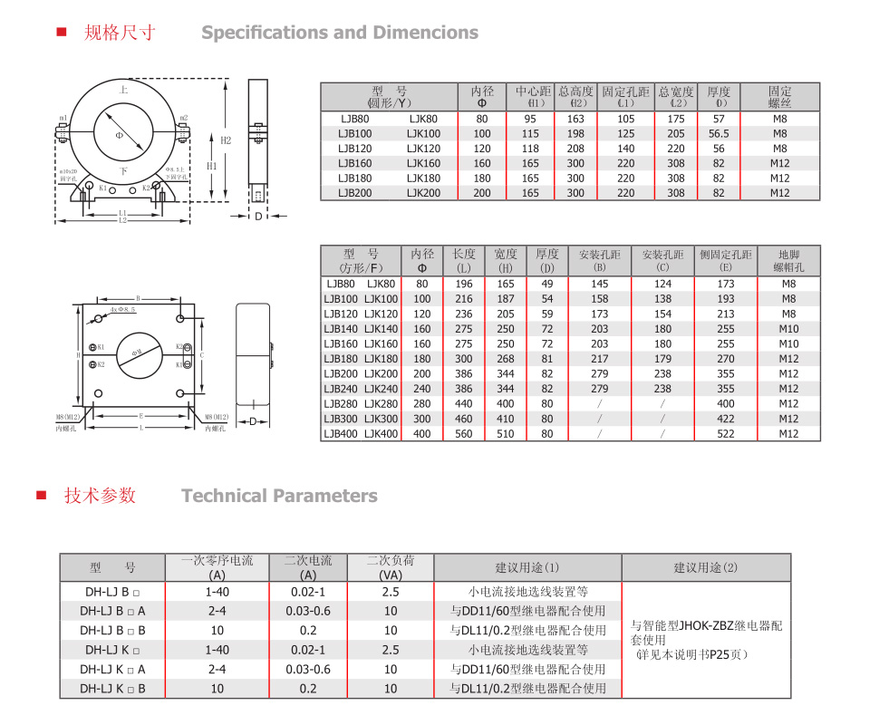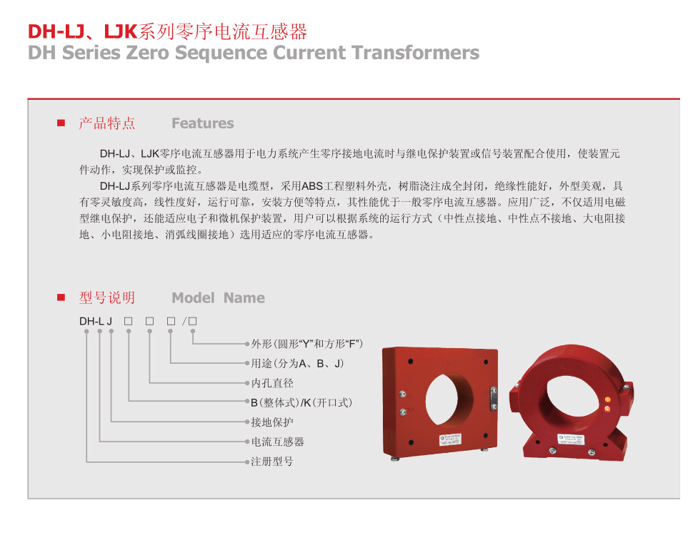 DH-LJ、LJK系列零序電流互感器